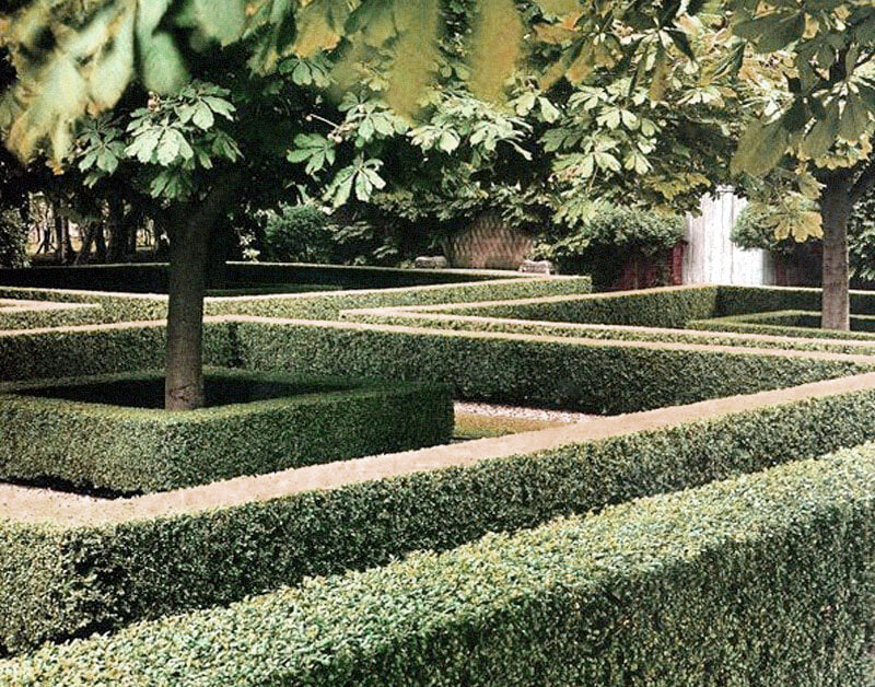created a beautiful sculptural landscape which features 150,000 individual box plants as well as pines, oaks and