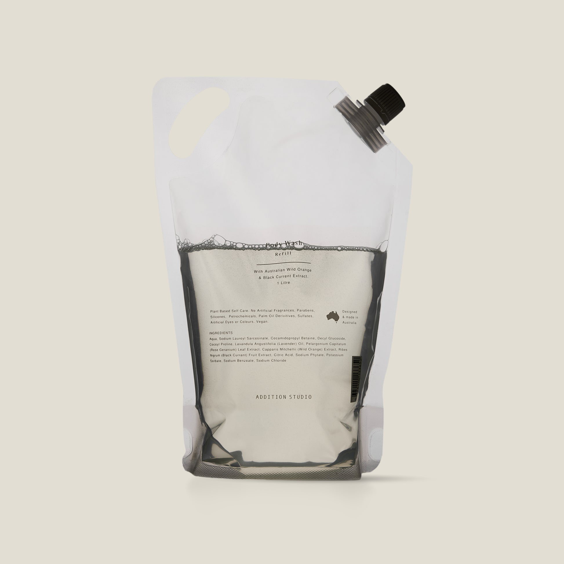 The 1 litre refill is presented in a a clear stand-up pouch, and features an easy to pour spout.